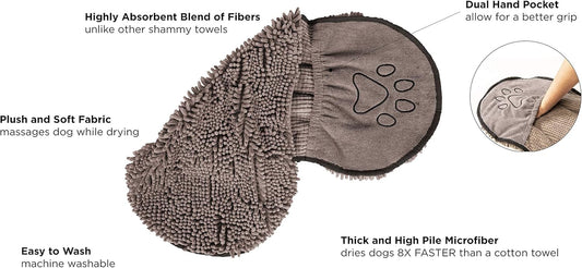 Shammy Dog Towels for Drying Dogs - Heavy Duty Soft Microfiber Bath Towel - Super Absorbent, Quick Drying, & Machine Washable - Must Have Dog & Cat Bathing Supplies | Grey 13X31