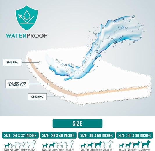 Fluffy Waterproof Dog Blanket Fleece | Soft Warm Pet Fleece Throw for Large Dogs and Cats | Fuzzy Plush Sherpa Throw Furniture Protector Sofa Couch Bed